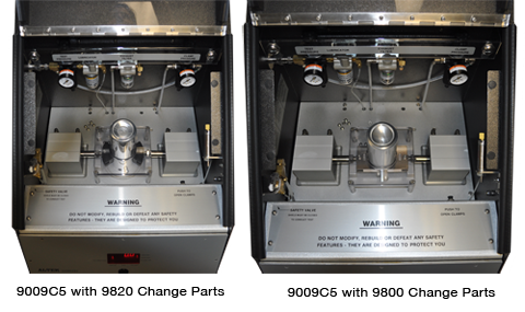 An appropriate set of Change Parts, determined by the can type and size being tested, are installed on the unit. A can
