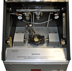 The MODEL 9009H4 End Buckle / Tab Blowout / Vent Test Station is used to determine the pressure at which