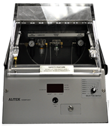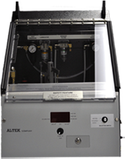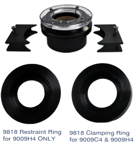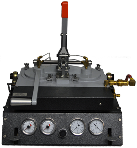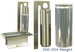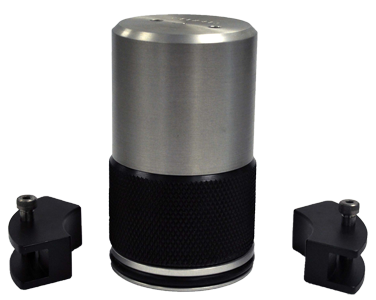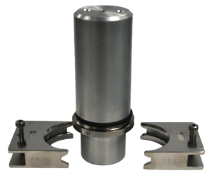 The 9760 Change Parts constrain an aerosol can as it is being pressurized from the inside. The 9760 consists of a cage fixture, with fitted top and bottom inserts, that quick-clamps around a can before the can is mounted in the tester.